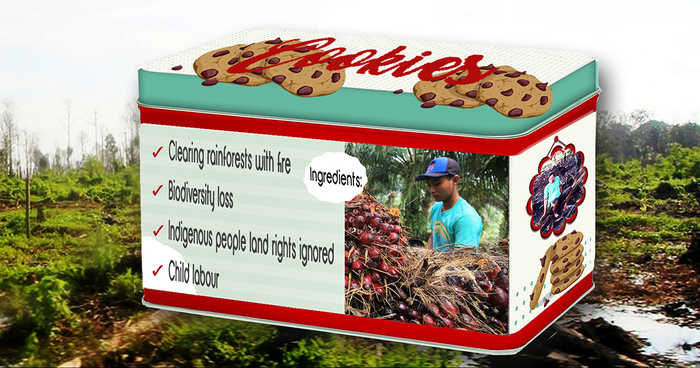 Although other products have palm oil as their main ingredient, we chose chocolate cookies as a symbol for the campaign because they gather other ingredients covered in different reports made for the SUPPLY CHA!NGE project such as sugar and cocoa – nevertheless the cookie campaign sets the focus on palm oil.
